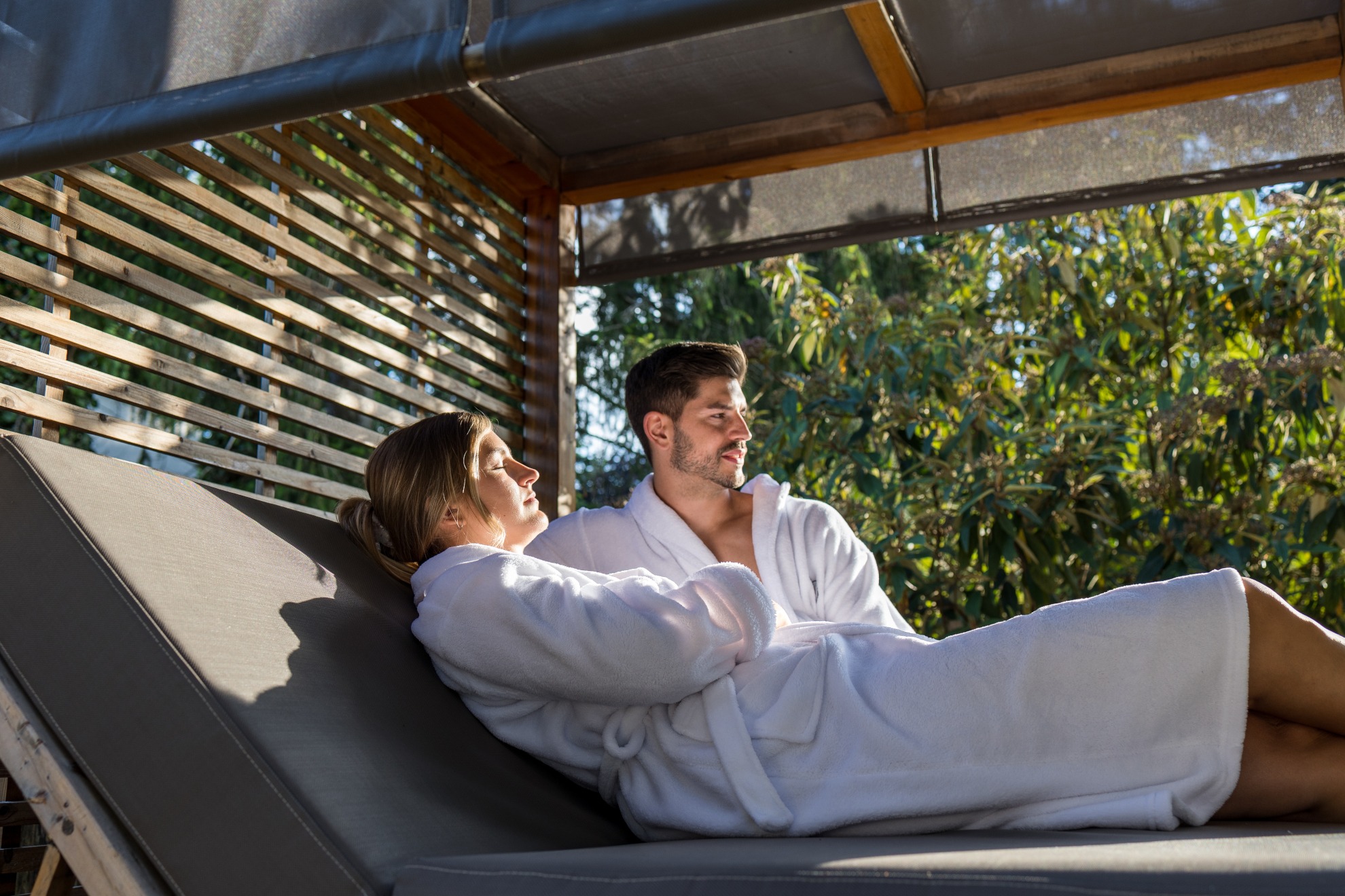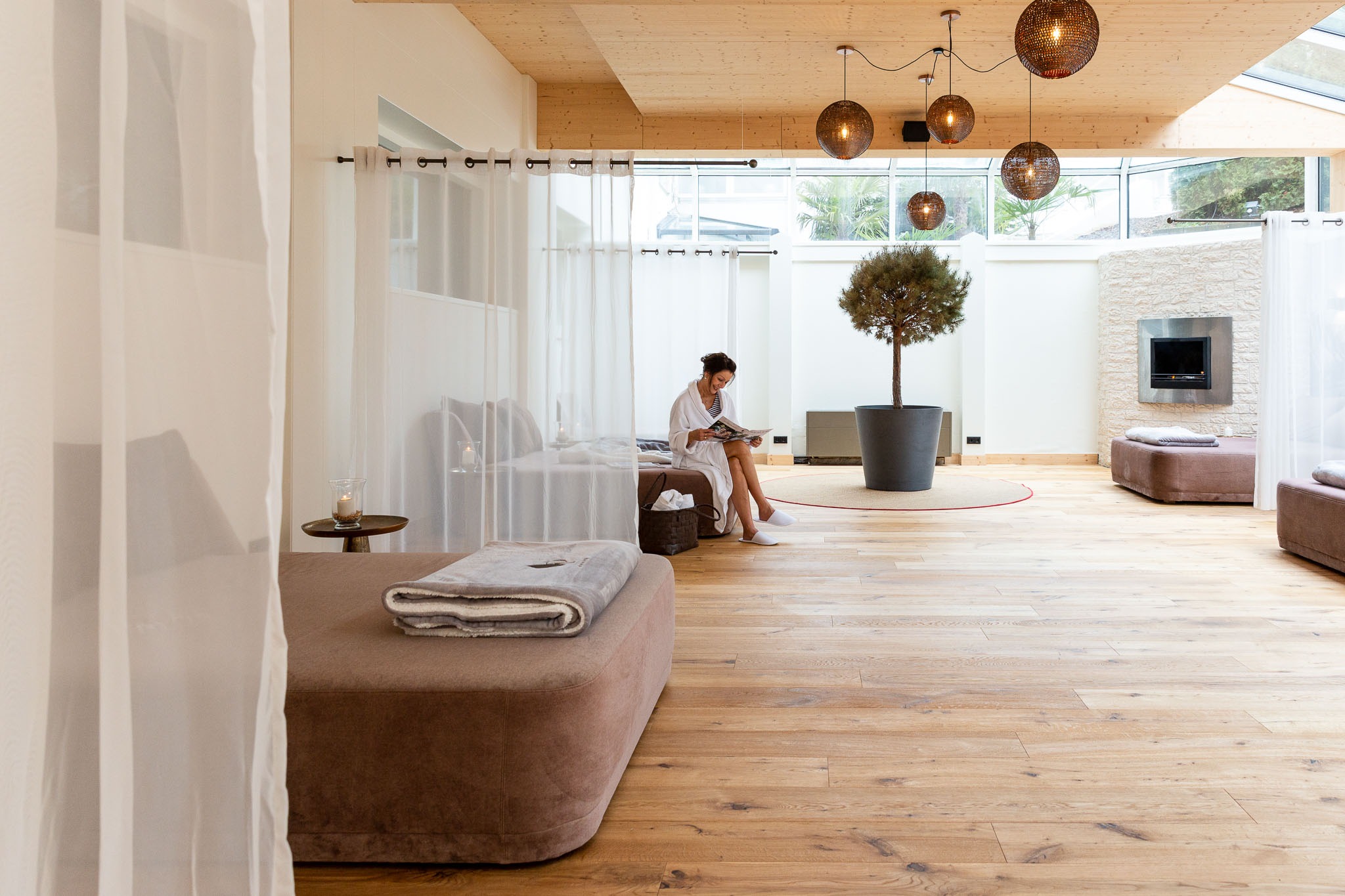 Whirlpool, vier Saunen, Südtiroler Waldloungen, drei thematische Ruheräume
